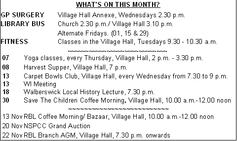 COPY PLEASE BY 8PM ON THE 15TH OF THE MONTH TO Tony Green, Winfield House, Stocks Lane,Walberswick, Southwold, Suffolk. Tel 01502 722347 (9 - 9, MON - FRI) (villagenews@walberswick.net)