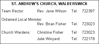 As you are probably already aware Easter will be early this year; that, in turn, means that Lent will be upon us this month. Once again an ecumenical study group will take place in the village, commencing on Tuesday 15th February and running for six consecutive Tuesdays; please watch the various notice boards for further details. Lent lectures on Sunday evenings will commence on 13th February, being held 6.00 p.m. at the United Reform Church in Southwold; the theme this year will be the Christian creed. Details of the first three lectures are as follows: 13th February…"I believe in God the Father, Almighty" - Ven. John Cox, Archdeacon of Sudbury 20th February…"I believe in God the Son" - Ms Christine Amjad-Ali - Principal of the Diocesan Ministry Course 27th February… "I believe in God the Holy Spirit"- Canon Derek Osborne, former Chaplain of Lea Abbey Because the Lent lunches will take place on Fridays during Lent there will not be a Luncheon Club in either February or March. Advance notice, therefore, that the next lunch will be at 12.30 p.m. on Friday 1st April - this is not an April Fools' Day joke! Looking ahead a bit. On 15th May we are to have a Team Confirmation Service. If anyone, young person or adult, would like to consider the possibility of confirmation this year, would you please contact either me or another member of the team within the next few weeks. Yours in Christ's service,
