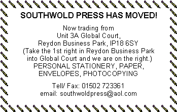 Have you visited our website recently? If not, may I suggest that you will find it worth several moments of your time? When I took over as editor, nearly a year ago, our website was languishing in the doldrums and looking very sorry for itself. Indeed the latest edition that was available on the site was the one for January 2001! Thus it has remained for many months. However, in the background things were stirring! We have been quietly beavering away on your behalf and now, like a butterfly emerging from a chrysalis, we have arrived! Thanks to many painstaking hours of hard work by Alexander Green and his colleague Tom Hammond we have a brighter, more user friendly, more informative and more interactive Village News website! Online you can now: Read the latest copy; submit your article or your favourite local picture; visit the archive section to refresh your memory about the last year's editions; provide feedback; find the latest contact details. You can also visit the 'Links' page to find out more about Walberswick and the surrounding area. Offline we also have a section of editions including those more than a year old. In short, we now have a website of which we can all be proud!