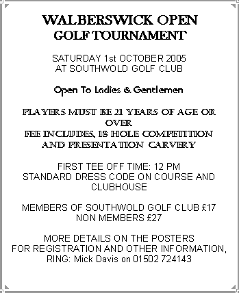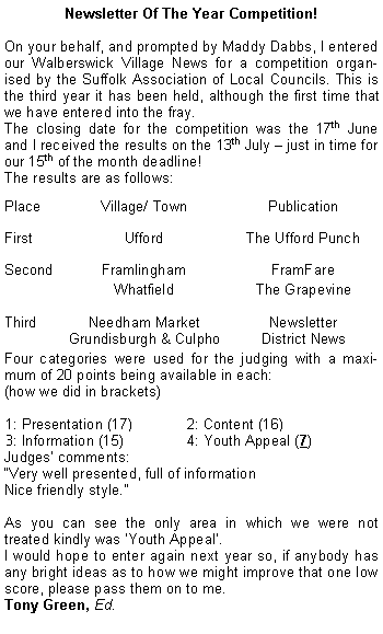 All the usual races: egg & spoon, three-legged, sack, and some for the grown-ups too! Come along to the sports field at the end of Church Lane at 2 p.m. and join in the fun. Cold drinks provided.