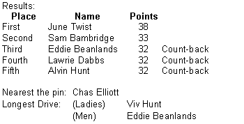 The weather on the day was cloudy and windy, however, it was dry and very playable. Altogether there were 22 entries, although those from Walberswick were a bit thin on the ground. The day was also a bit special in that, for the first time, a lady was in first place. Well done to everybody who took part.