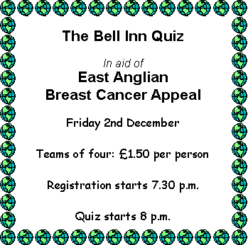 Planning - Permission has been granted for a single storey rear extension and first floor balcony to Winfield House, Stocks Lane and for the erection of part two-storey and part single-storey side/ rear extension and replacement garage at Blythwyc Cottage, The Street. 2 Anchor Cottages has also been granted permission to build an extension to form a dining room and bathroom on the first floor. A planning appeal has been made to the Secretary of State following the refusal for permission to build a pair of semi-detached dwellings and two detached garages on the land at The Studio, Stocks Lane. Works to the Bailey Bridge - Suffolk County Highways Department will be carrying out essential repairs to the Bailey Bridge, over the River Blyth, in November. It is understood that the bridge will remain open to pedestrian traffic except for short periods (of 30 to 40 minutes duration) when it will be necessary to close the bridge for safety reasons. (For further information see Parish Council notice board outside Village Hall). Emergency Plan - The Chairman, Robin Buncombe and Vice Chairman, Madeleine Dabbs, have been working on an 'Emergency Plan' for Walberswick over the last few months. Councillor Dabbs has now formulated a letter and questionnaire, which will be sent out to every household in the near future. Beach Clean - This has been arranged for Sunday 20th November.
