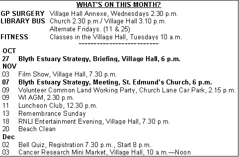 Walberswick, Southwold, Suffolk. Tel 01502 722347 (9 - 9, MON - FRI) (villagenews@walberswick.net)