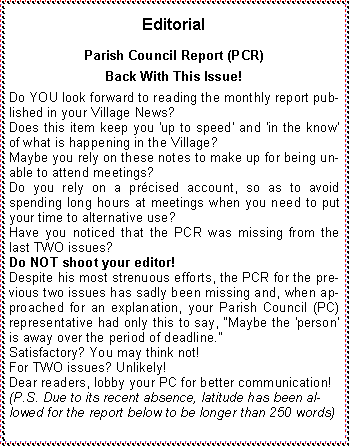 Planning Matters - The Parish Council has no objections to the following applications: - Proposed dormers in lieu of existing Velux windows to Ferry House, Ferry Road: the erection of a single-storey rear extension at Kermont, The Street and the erection of single-storey side extension, first floor side extension and balcony to Seaspray, Millfield Road. Suffolk Coastal has granted permission for the erection of a replacement dwelling, carport and alterations to existing vehicular access to Shortlands, Palmers Lane. They have also granted permission for a two-storey and single-storey extension and replacement garage at Littlestowe, Leveretts Lane. Both were subject to the developments being carried out in accordance with the submitted plans and to conditions set by the Planning Authority. Blyth Estuary - The Environment Agency disputed the Group's findings, still considered that the tidal prism was increasing and that there was no significant accretion in the estuary: despite local opinion to the contrary. However, Dr Alan Thompson, a geomorphologist, has given independent advice and supported the Group's findings. The Council and Southwold Town Council agreed to attend a meeting with Dr. Thompson on Monday 13th August. Local Matters - The toilets have been repainted. The Jubilee seat required a false roof to prevent the thatch being vandalised. Complaints have been received about the ragwort on Cliff Field: this would be passed on to the Trust. Complaints have also been received about children playing football on the Village Green. Councillors felt unable to prevent this as the Village Green was a play area, however, Councillor Buncombe agreed to look into the possibility of providing goal posts for the sports field. Viv Hunt, Clerk to Council